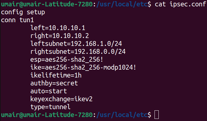 This completes the ‘configuration files’ step. We now move towards enabling the charon dameon and initiating tunnel connections.